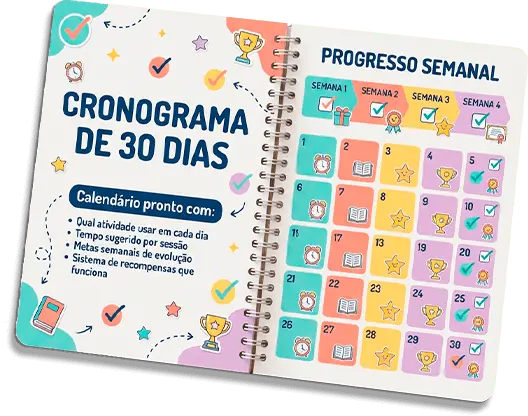 Nada de pular etapas. Nada de confundir a criança. Cada PDF prepara para o próximo.