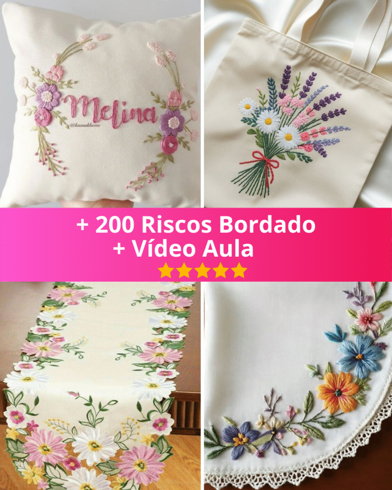 Junte-se às mais de 40 mil alunas do Bordado Livre – Passo a Passo e aprenda tudo com vídeo aulas completas, certificado de conclusão e um grupo exclusivo para te apoiar desde o início — comece ainda hoje!